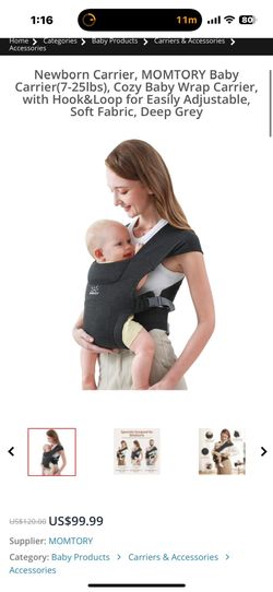 Newborn Carrier, MOMTORY Baby Carrier(7-25lbs), Cozy Baby Wrap Carrier, with Hook&Loop for Easily Adjustable, Soft Fabric, Deep Grey$15Imperial Beach, CA