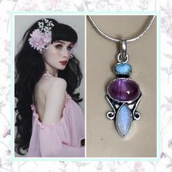 AMETHYST TRIPLE STONE NECKLACE PENDANT TURQUOISE MOONSTONE CELTIC GODDESS GEM$49North Las Vegas, NV