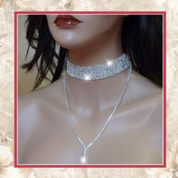 🌸 RHINESTONE NECKLACE CHOKER DANGLE DIAMOND BLING CLUB CLASSY LONG SILVER SHINY$35Las Vegas, NV