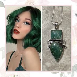 CHRYSOPRASE GEMSTONE NECKLACE FOREST GREEN CRYSTAL PENDANT CELTIC WITCH VIXEN BOHO CHIC$25North Las Vegas, NV