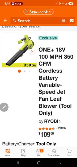 RYOBI ONE 18V 350CFM BLOWER TOOL ONLY$60Beaumont, CA