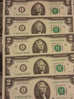 2 Dollars B I ll Neven Circulated Sequence Numbers!$25Santa Ana, CA