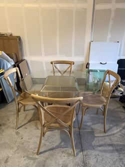 Gold Mirror Glass Dining Table Set With 4 Wooden Chairs$425Us Air Force, CO