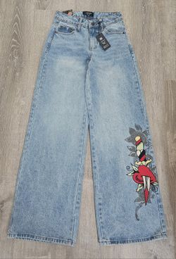 Ed Hardy Dagger Heart Retro Light Loose Fit Wide leg Jeans Sz. 24$90Elk Grove, CA