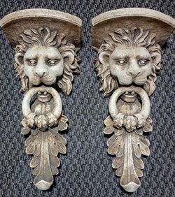 SET OF 2 EXQUISITE VINTAGE 16" LION HEAD SCONCES HEAVY QUALITY $200Ventnor City, NJ