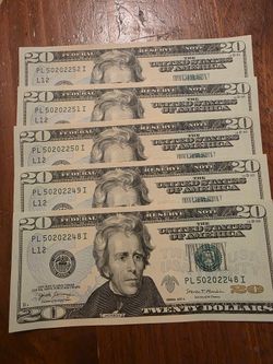 5 Sequential $20.00 Bill's Uncirculated $120Vanderbilt, PA