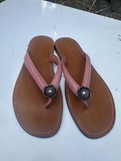 New Coach Womens Size 10 Pink Leather Flip Flop Sandals Floral Charm Thong$40Irwindale, CA