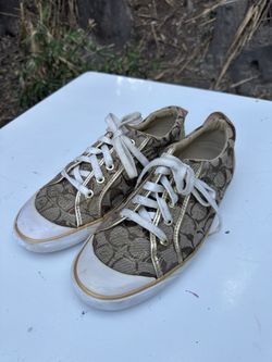 Coach Signature Canvas Lace Up Sneakers Womens Size 10B Brown Logo Shoes$35Irwindale, CA