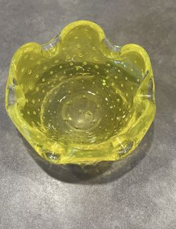 Vintage Murano Art Glass Bullicante Lemon Canary Yellow Controlled Bubbles Bowl$40Grand Prairie, TX