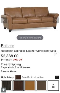 Espresso Leather Couch Like New $1,500Grand Prairie, TX