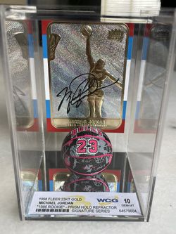 Michael Jordan Bulls gold 85’ 86’ 87’ Fleer limited edition card Spalding mini Basketball custom Sports box$60Garden Grove, CA