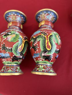 Chinese Cloisonné enamel vases, likely made of brass, featuring dragon$175Irvine, CA