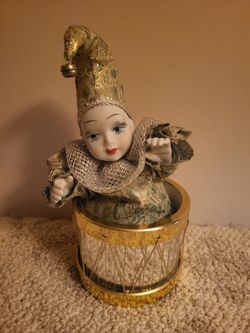 9" Tall Animated Moving Musical Porcelain & Fabric Clown Doll Sitting In Drum $18Weslaco, TX