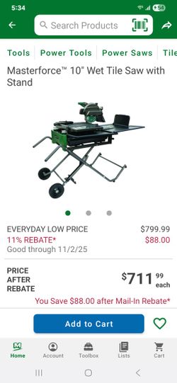 MASTERFORCE 10" WET TILE SAW$400Punta Gorda, FL