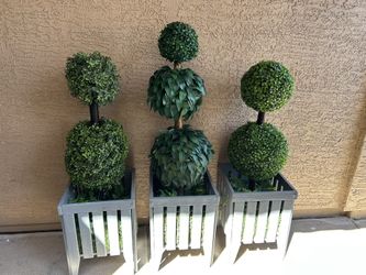 (3) 4 foot Artificial Topiary 24” Double Ball Outdoor/Indoor Boxwood Plants in decorative planter’s $225Gilbert, AZ