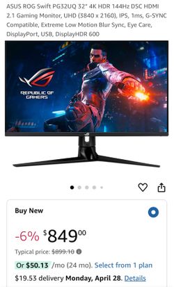 ASUS ROG Swift PG32UQ 32” 4K HDR Monitor 144Hz IPS DisplayHDR 600$495Lake Forest, CA