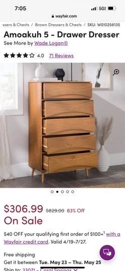 Amoakuh 5 - Drawer Dresser Caramel Color $300Pompano Beach, FL