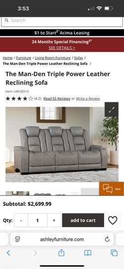 Reclining Leather Sofa $1,000Miami, FL