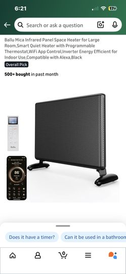 Ballu Mica Infrared Space Heater Large Room,Panel Heater with Programmable Thermostat,WiFi App Control,Portable Stand or Wall Mount, Energy Efficient $160Denver, CO