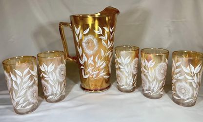 Vintage Iridescent Peach Lustre Jeanette Glass 58oz Pitcher & 5 Matching Glasses$55San Marcos, CA