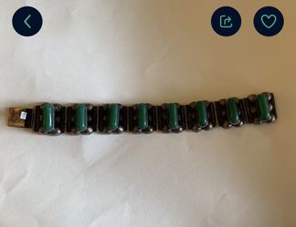 Vintage green onyx Mexican silver bracelet, a bit tarnished with a few dents and dings$100Seattle, WA
