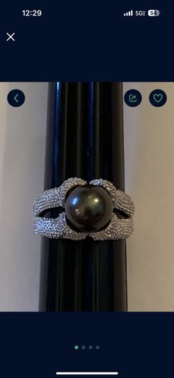 Stunning textured sterling silver princess ring with a black Tahitian Pearl and added diamond sparkle size 6. $75Seattle, WA