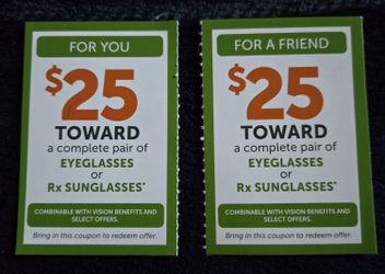 2 coupons $25 off glasses$0Las Vegas, NV