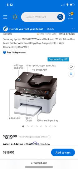 Samsung Xpress M2070W Wireless Monochrome Laser Printer $250Scottsdale, AZ