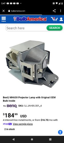 BenQ MH630 Projector Lamp with OEM Bulb Inside$45Belton, SC