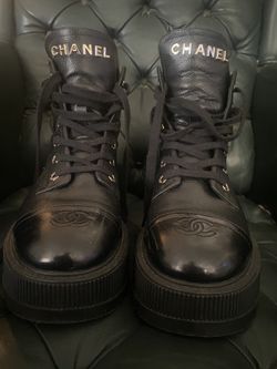 Chanel Women's CC Cap Toe Lace Up Combat Boots Black Leather Size 39$850San Diego, CA