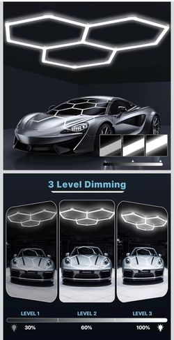 HYPERLITE Gen 2 Hexagon Garage LED Light, Upgraded 3 Level Dimmable 105W 10500LM Super Bright Garage Detailing Lights, 3 Grids Hex Shop Light, Hexagon$60Lynwood, CA