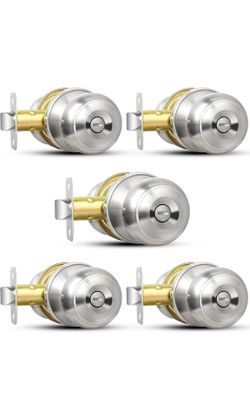 Privacy Door Knob, 5 Pack Brushed Nickel Round Keyless Doorknobs Interior/Exterior Lockset, Privacy Locking Door Knobs for Bedroom/Bathroom, Modern De$45Lynwood, CA