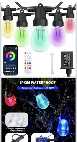 Outdoor String Lights 50FT, Outdoor Lights for Patio with 20 Dimmable RGBW LED Bulbs, IP66 Waterproof Shatterproof, with APP Control & Remote, 24V Ada$50Lynwood, CA