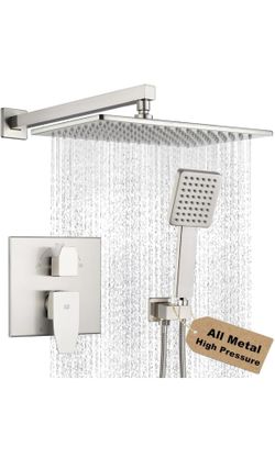 POP SANITARYWARE Shower Faucet Set Brushed Nickel Rainfall 12 Inch Shower Head and Handle Set Bathroom Rain Shower System Wall Mounted Shower Fixture $135Lynwood, CA