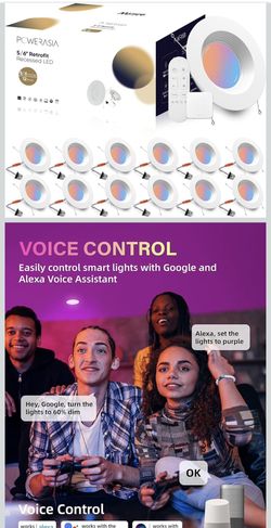 POWERASIA 12 Pack 5/6 Inch LED Retrofit RGB Recessed Lighting, 12W 1200LM Smart Can Lights, Recessed Lights 2700K-6000K Color Changing Compatible with$90Lynwood, CA