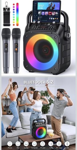 Karaoke Machine, Portable Bluetooth Speaker with 2 Wireless Microphones for Adults & Kids with Lights, Karaoke Microphone with PA System Supports USB/$55Lynwood, CA