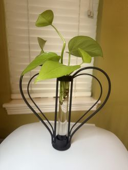 Thornaby Heart Shaped Iron and Glass Cylinder Vase with Neon Pothos Rooted Cutting $20Bothell, WA