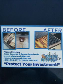 Looking to get rid of you're pigeon problem best quotes in town hands down...valley wide services call to schedule you're free quote today ..$1Queen Creek, AZ