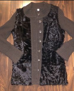 Saks Fifth Avenue Wool brown sweater w/ Genuine Lamb fur . Size S$60Hillsboro, OR
