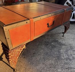 One of a kind trunk leather cast iron coffee table. $145Hillsboro, OR