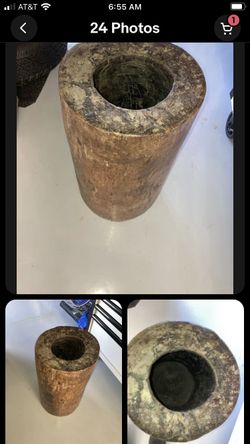 Antique Heavy primitive INDIAN?large 26” tall wood butter pot hand carved. $350Ysleta Sur, TX