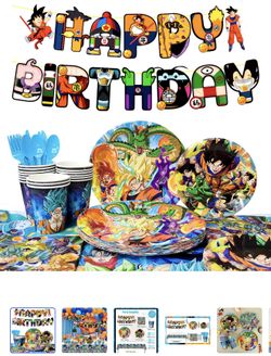 Dragon Ball Birthday Party Decoration Tableware Set, Dragon Ball Party Supplies Tableware Include Dragon Ball Table Cloth Banner Plates Napkins Cups, $15La Habra Heights, CA