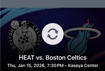 2 Miami Heat Bs Boston Celtics Tickets Tonight $90Halndle Bch, FL