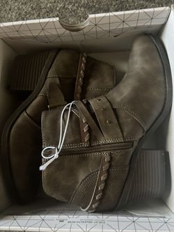 JellyPop Strappy Ankle Booties Women Sz 7 Brown Leather Almond Toe Side Zip$20Burlington, NC