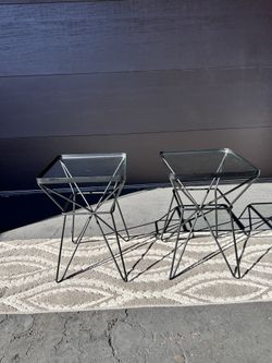 Pair (2) Metal W/ Glass Side Accent Patio Tables Or Nightstands $65San Diego, CA