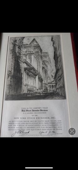 Vintage New York Stock Exchange Member Certificate $150Miramar, FL