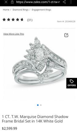 1.0 carat Diamond 14 k white gold bridal ring set From Zales$2,000Lakeland, FL