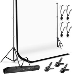 SLOW DOLPHIN Photo Background Support System with Backdrop Stand Kit, 100% Pure Muslin 6.5 Ft x 10 Ft (White/Black) Backdrop,Clamp, Carry Bag for Phot$45San Antonio, TX