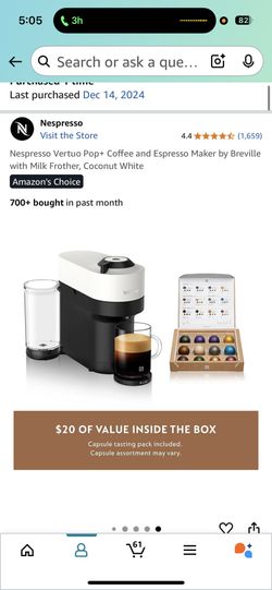 Nespresso Vertuo Pop+ Coffee and Espresso Maker by Breville with Milk Frother,$150Deland, FL