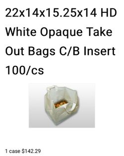 NEW BOX of 100….22x14x15.25x14 HD White Opaque Take Out Bags C/B Insert 100/cs 3.0 MIL$120Salt Lake City, UT
